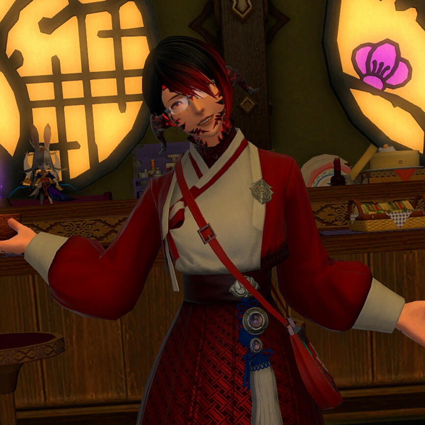 We're a unique blend of peoples from across Eorzea and beyond; brought together from our love of Doman and Hingan culture and their amazing foods. Our mission is to provide you with the best experience possible and we're constantly looking for ways to improve!Our staff is an ever evolving family, and we're each excited to meet you! Here are a few words from us to you~!